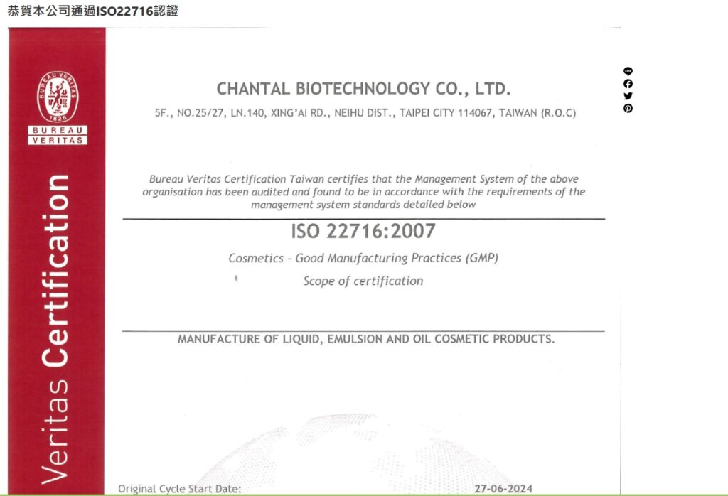 千妥生技通過ISO22716認證